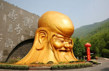 ???? 這位笑容可掬、慈祥親切的老壽星是長壽文化區(qū)的標志性建筑,他頭部高12.8米,是由純銅制作而成的,而身體則是整個山坡,故而被稱為中國第一壽星。