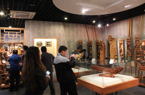 ??????? 跟隨著導游帶領,【中國竹雕刻精品藝術館】便浮現(xiàn)在眼前、館內(nèi)珍藏了許多技藝精湛的竹雕刻藝術品。該館占地面積約3000平方米,共分為兩個展館——A館和B館,A館主要展示了竹子的發(fā)展進程、中國竹刻雕藝術品及各類竹根雕、竹編手工藝等,B館為售賣區(qū),為我們提供了各類竹根雕工藝品、竹纖維制品和竹炭等,充分顯示了中國源遠流長的竹文化精髓。