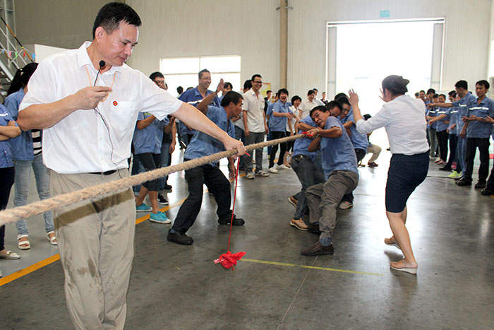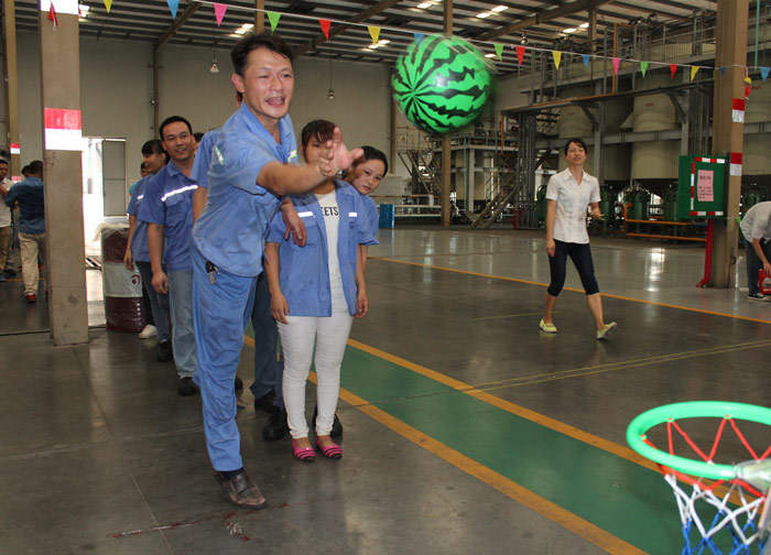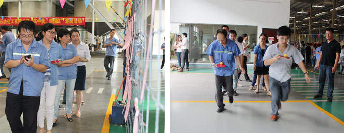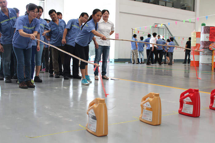 ? ? ? ? 9月25日下午15:00整,隨著一聲響亮的哨聲,游園活動在調(diào)油車間正式開始。點球大戰(zhàn)、投籃高手、大步流星、眼疾手快、猜謎、繞口令這些趣味十足的游戲讓員工們玩的不亦樂乎。彰顯團(tuán)隊凝聚力的拔河比賽最為精彩,隊員們都咬緊牙關(guān),使出全身力氣,都想在緊張激烈的力量拉鋸戰(zhàn)中勝出,觀眾的加油吶喊聲連綿不斷,現(xiàn)場氣氛熱烈至極,獲勝的隊伍歡呼雀躍,擊掌慶祝。