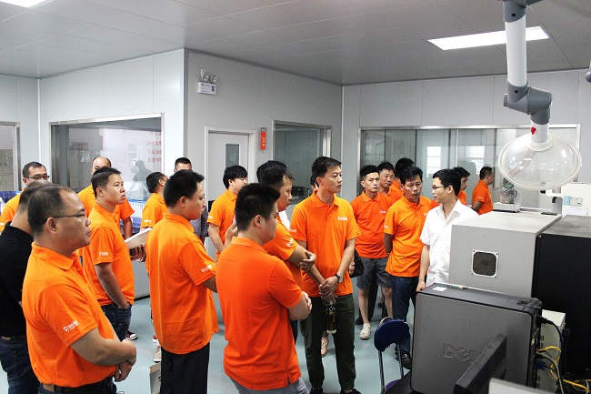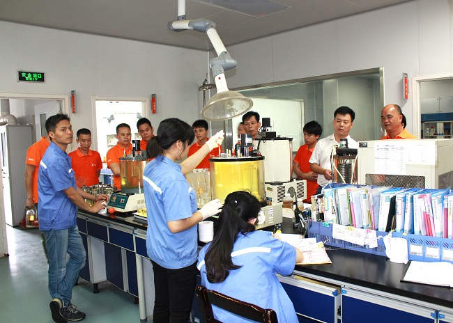 研發(fā)中心主任韋起桂帶領大家參觀了司能的中心實驗室。該中心目前是廣西壯族自治區(qū)內(nèi)技術水平最高、分析手段最齊全的潤滑油分析評定中心。韋主任針對生產(chǎn)自動化,基礎油采購渠道,先進的技術檢驗研發(fā)設備等話題與現(xiàn)場來賓們進行了交流與探討,使之更加拉近與經(jīng)銷商、終端客戶的距離。