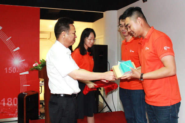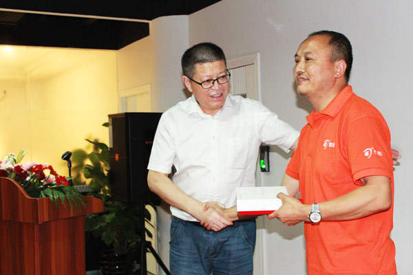 △營銷公司副總經(jīng)理潘健康為渠道優(yōu)質(zhì)客戶開發(fā)能手頒獎(jiǎng)。