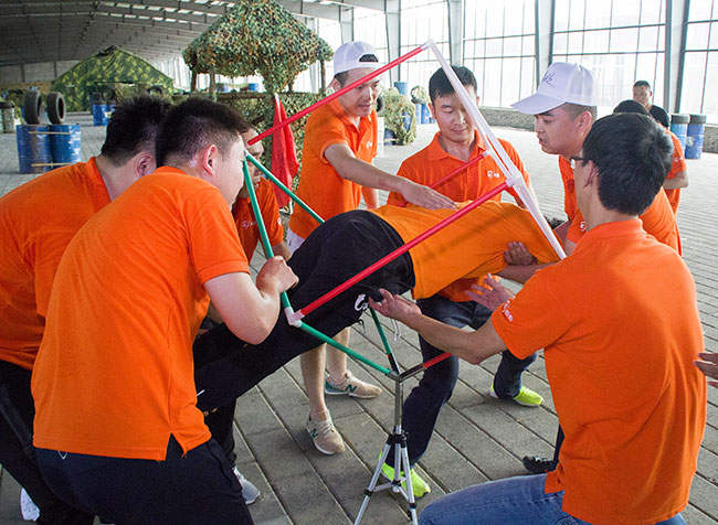 擰成一股繩,我們的力量足以支撐4個(gè)人的體重在繩上行走,在繩上行走的伙伴正象征著我們的領(lǐng)導(dǎo)層,他們需要相信伙伴們的力量,而底下伙伴的支持才是成功的關(guān)鍵!