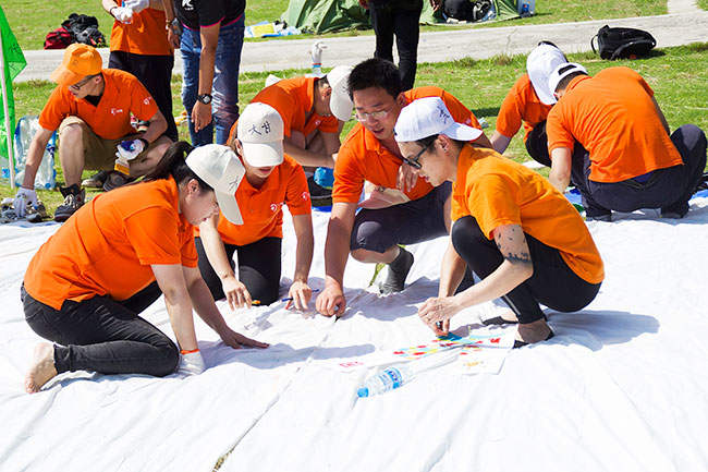在動(dòng)手畫(huà)之前,一定要各小隊(duì)經(jīng)過(guò)充分的溝通配合,才能成就最終完整的一副藍(lán)圖。