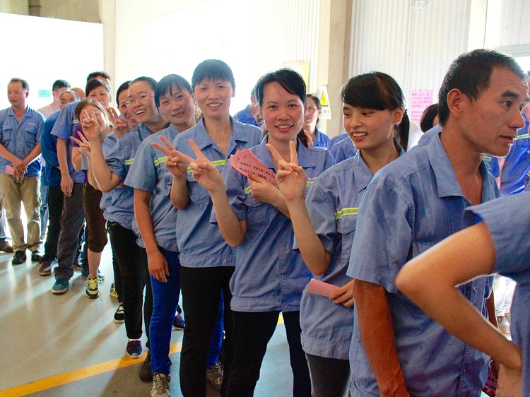 ? ? ? ? 游園活動由公司黨支部組織,活動設(shè)置了八個游戲,其中集體活動兩個,個人項(xiàng)目六個。游園活動持續(xù)了近兩個小時,整個游戲過程笑聲不斷,助威聲此起彼伏,洋溢著濃濃的節(jié)日氣氛。拔河游戲引來了一大批帥哥美女一試身手,猜謎語高手迅速動手摘下謎面,點(diǎn)球大戰(zhàn)游戲排起長龍,盲人敲鑼游戲樂翻了天,眼疾手快釣油瓶游戲更是人氣超旺……笑聲、掌聲、歡呼聲充滿了整個活動場地。公司為本次活動準(zhǔn)備了豐富的獎品,洗衣液、洗衣粉、抽紙、牙膏、香皂等。領(lǐng)到獎品的同事,臉上充滿了開心的笑容。