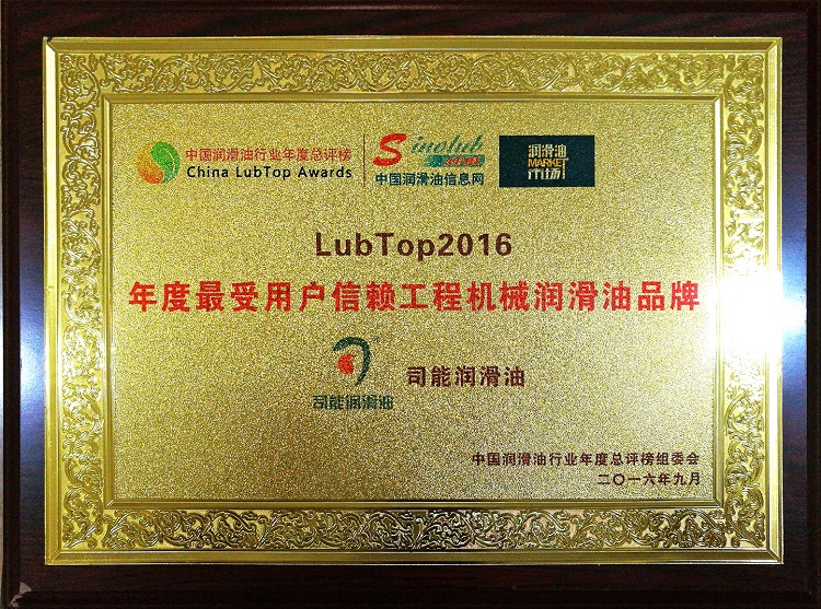 ▲司能石油化工有限公司榮獲“最受用戶(hù)信賴(lài)工程機(jī)械潤(rùn)滑油品牌”