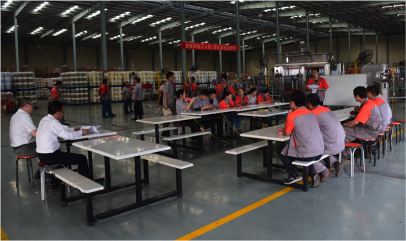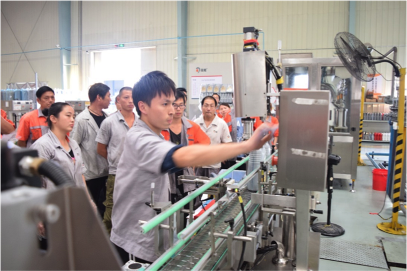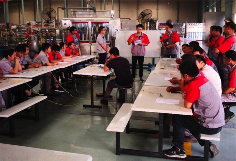 本次質(zhì)量月競賽活動(dòng)由知識競賽和技能競賽兩部分組成。知識競賽以知識搶答的形式展開,有小包裝4組、中控室1組、200L 1組、調(diào)油班1組、設(shè)備和內(nèi)勤1組,共8個(gè)參賽小組24名員工參加競賽。技能競賽又分為封箱機(jī)調(diào)試速度比拼、旋蓋機(jī)調(diào)試速度比拼、油墨噴碼機(jī)調(diào)試速度比拼、200L空桶滾桶速度比拼、濾袋更換速度比拼、俯臥撐、扳手腕7項(xiàng)比賽內(nèi)容,共有20余名員工參加比賽。